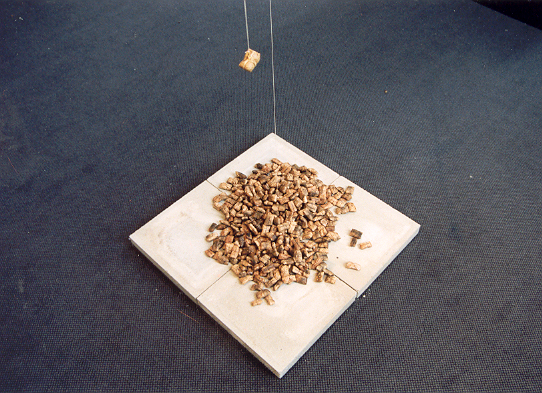 Je dis simplement ce qui s’écrit en ce lieu, avec des objets concrets, encres, couleurs, formes, matières, mots… lieu et lien, questionnement… tentative d’équilibre s’arrachant sans cesse au lyrisme du moi, autant qu’à l’objectivité réelle du monde, tentative de dépossession de soi et d’osmose avec l’altérité… sorte de fil katgut qui recoud les lèvres d’une plaie… cette écriture m’échappe tel le fil d’Ariane, ou celui du funambule. Je ne sais s’il conduit au Minotaure ou s’il s’accroche à d’invisibles cerfs-volants par-dessus les nuages… à moins qu’il ne renvoie au seul funambule. Parfois il se tricote… se transforme en texte.